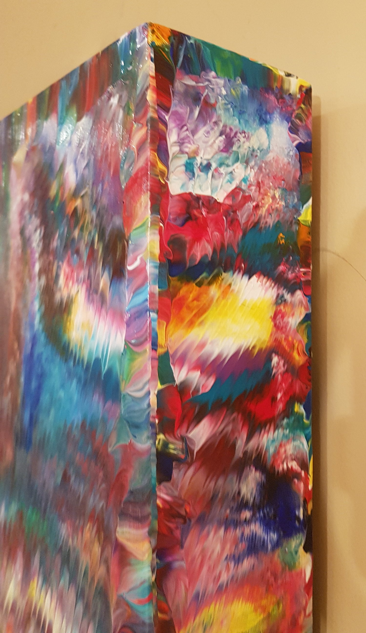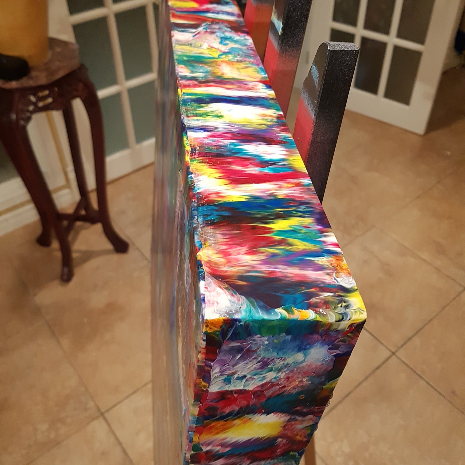 Painted on a custom-made wood canvas with thick 3-inch sides, the colors continue seamlessly around the edges, creating an impactful look from every angle—ready to display without a frame.