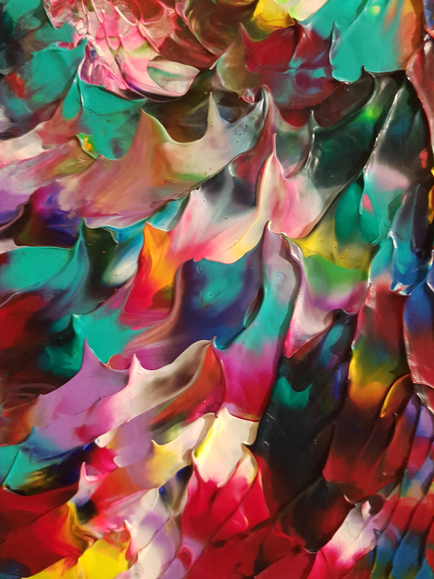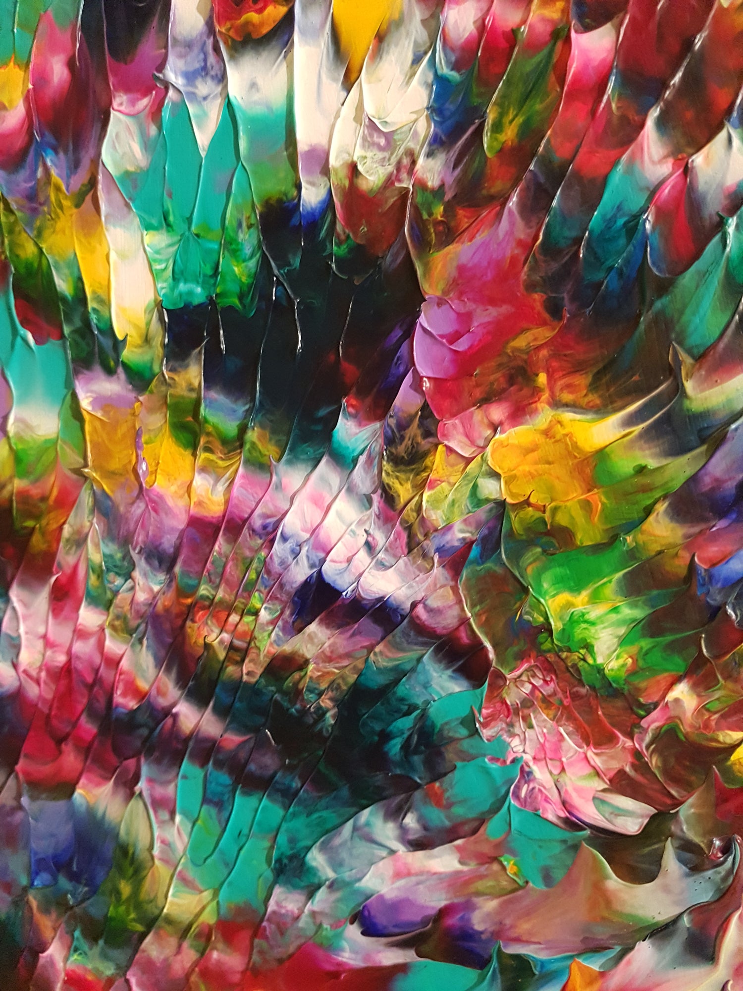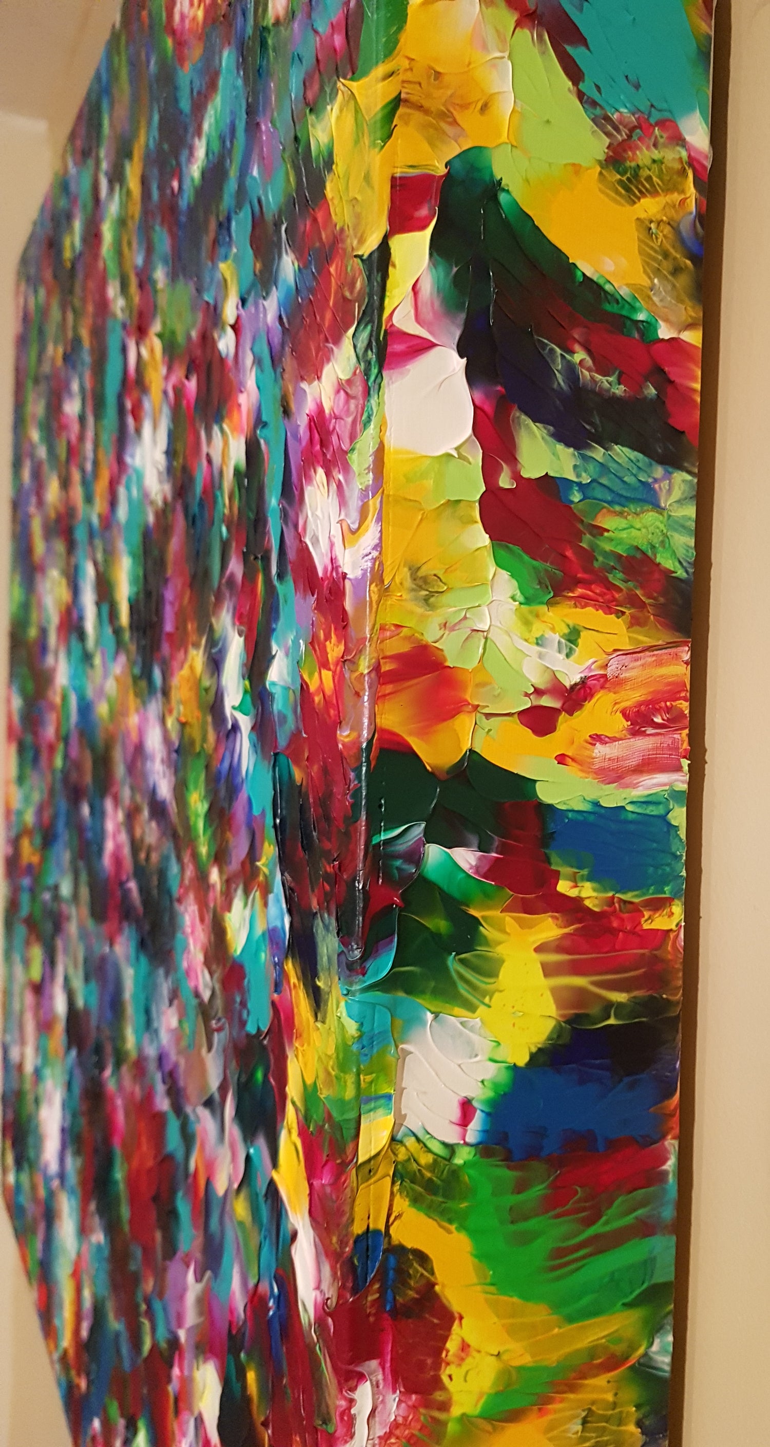 The original abstract expressionism painting titled "Psychedelic Wasteland" is a beautiful, eye-catching, one-of-a-kind painting created with vibrant colours and amazingly thick textures throughout the entire artwork, including the sides, that are painted in the same style as the front, on a custom-made, deep-edge wood canvas, that have 3-inch sides and makes for a stunning viewing experience from all angles.