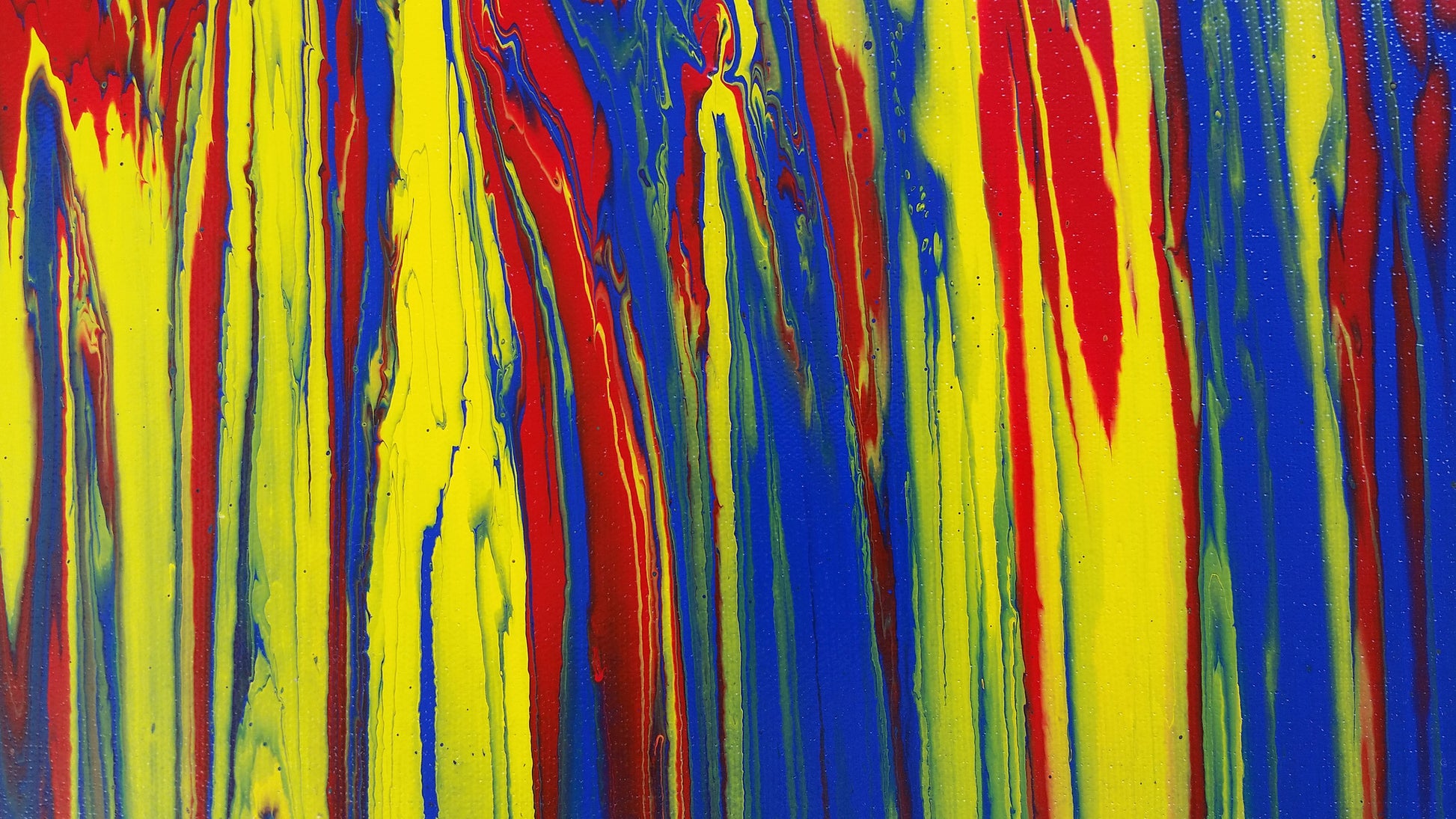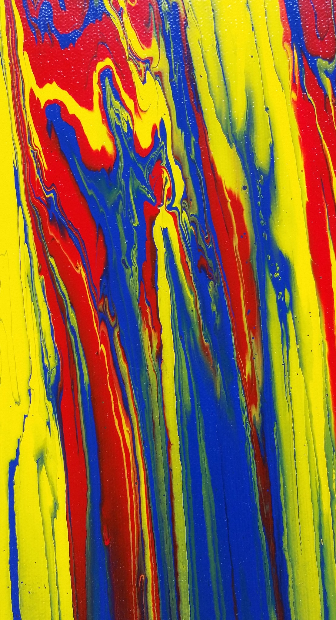 Primary Abyss is a bold fluid painting that's part of the "Primary Collection". The collection features vibrant high gloss enamel pieces that combine the three primary colors: blue, red and yellow. The sheen of this paint has a beautiful glow to it that looks amazing. In color theory this combination is called "Triad". These color schemes refer to colors that are evenly space around the color wheel.