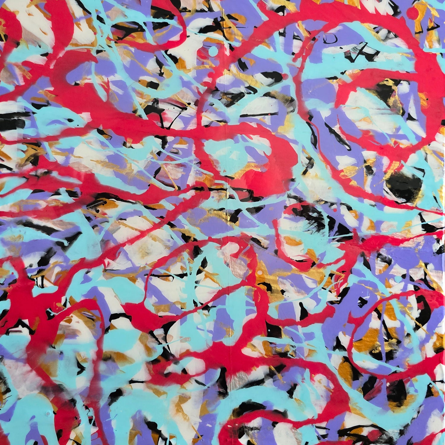 All the colours in this artwork are custom mixed including a vibrant magenta and fuchsia pink swirled with baby blue and a uniquely blended purple. A playful and visually striking composition is created by contrasting black and metallic gold tones. The piece adds a fun pop of colour to your space, which can be incorporated into accents to tie everything together. Resin is applied to achieve a lustrous high gloss finish that protects the painting, creates texture, and enhances the colours.