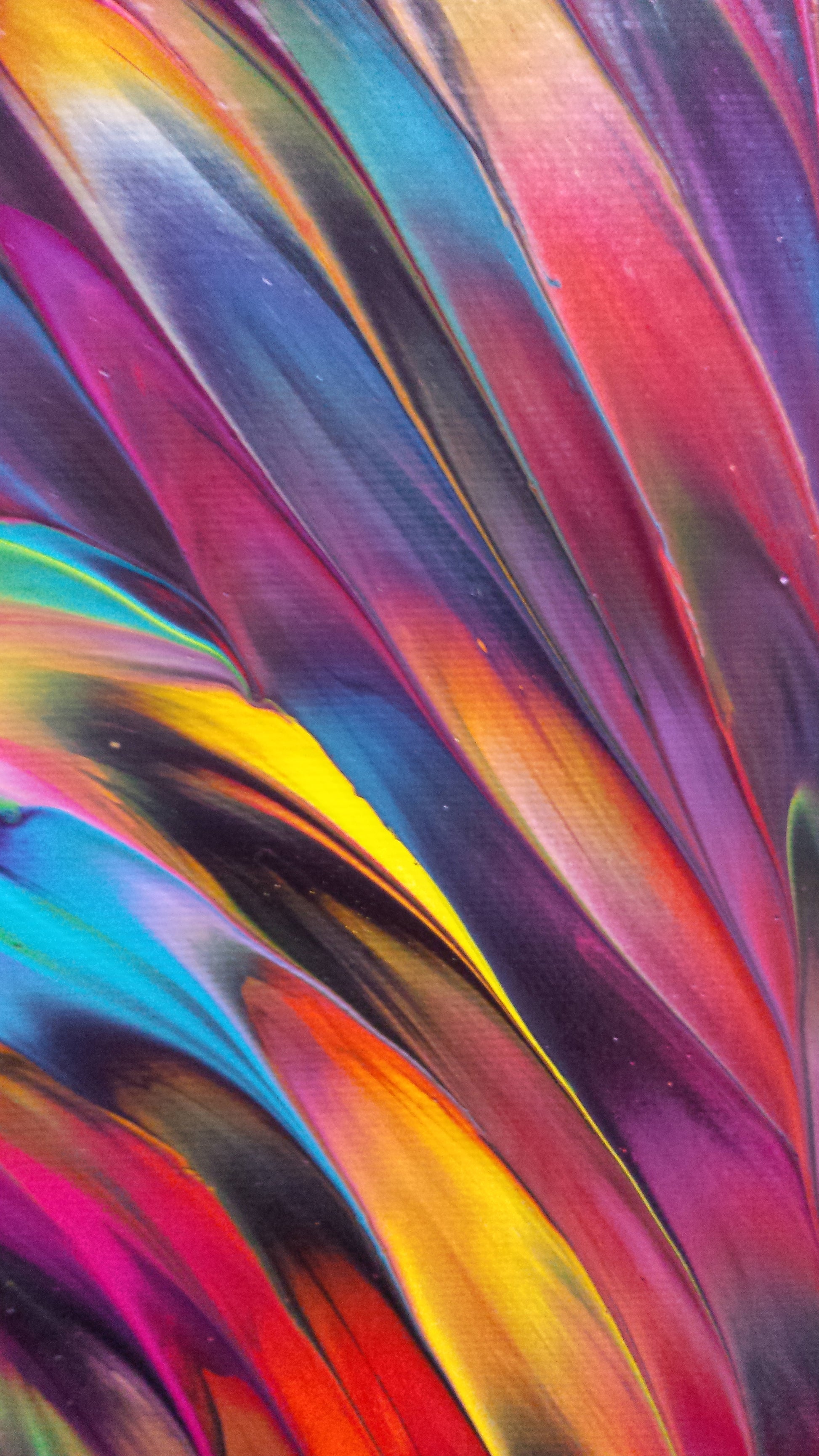 "Tropical Blaze" is an original colorful abstract painting with beautiful, rich colors. Bold reds, magenta, and different tones of violet infuse this painting with a luxurious element. The color purple is often associated with royalty, nobility, luxury, power, and ambition. Black and blue provide complementary contrast against the warm colors; the yellow and orange hues brighten up the piece. This eye-catching, unique focal point will stand out in any contemporary space. I hope it serves as a wonderful conversation piece that brings joy to other people's lives through the influential effect of color therapy and color psychology.